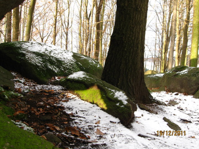 An der 'Stein-Bildwand' zeigte sich am 19.12.2011 um 10.15 Uhr der von der Sonne 'gelieferte' Lichtfleck, der bis über die Oberkante des Steines reichte.