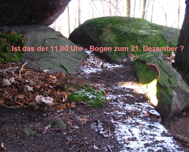 Jetzt ist die untere Kante des "Steinbogens" erreicht, die zwei Differenztage bis zum 21./22.12.2011 werden dem Sonnenlicht nur eine kleine Änderung bieten.